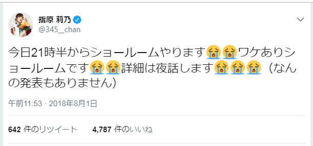 2018/08/01 指原P ショールームスタート21:34〜