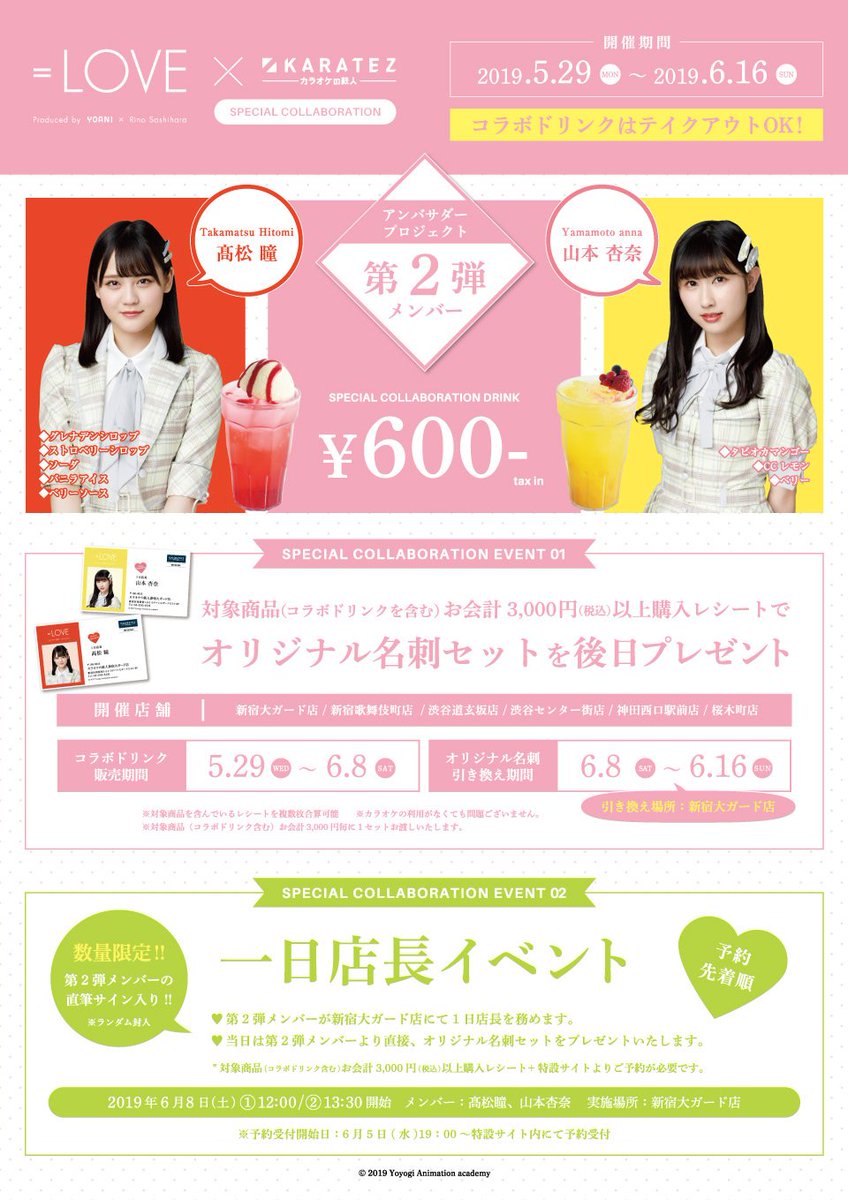 [イコラブ] 6月8日「=LOVE×カラ鉄」1日店長イベント第2弾が決定(メンバー:髙松瞳&山本杏奈)【ひとみん、あんな】